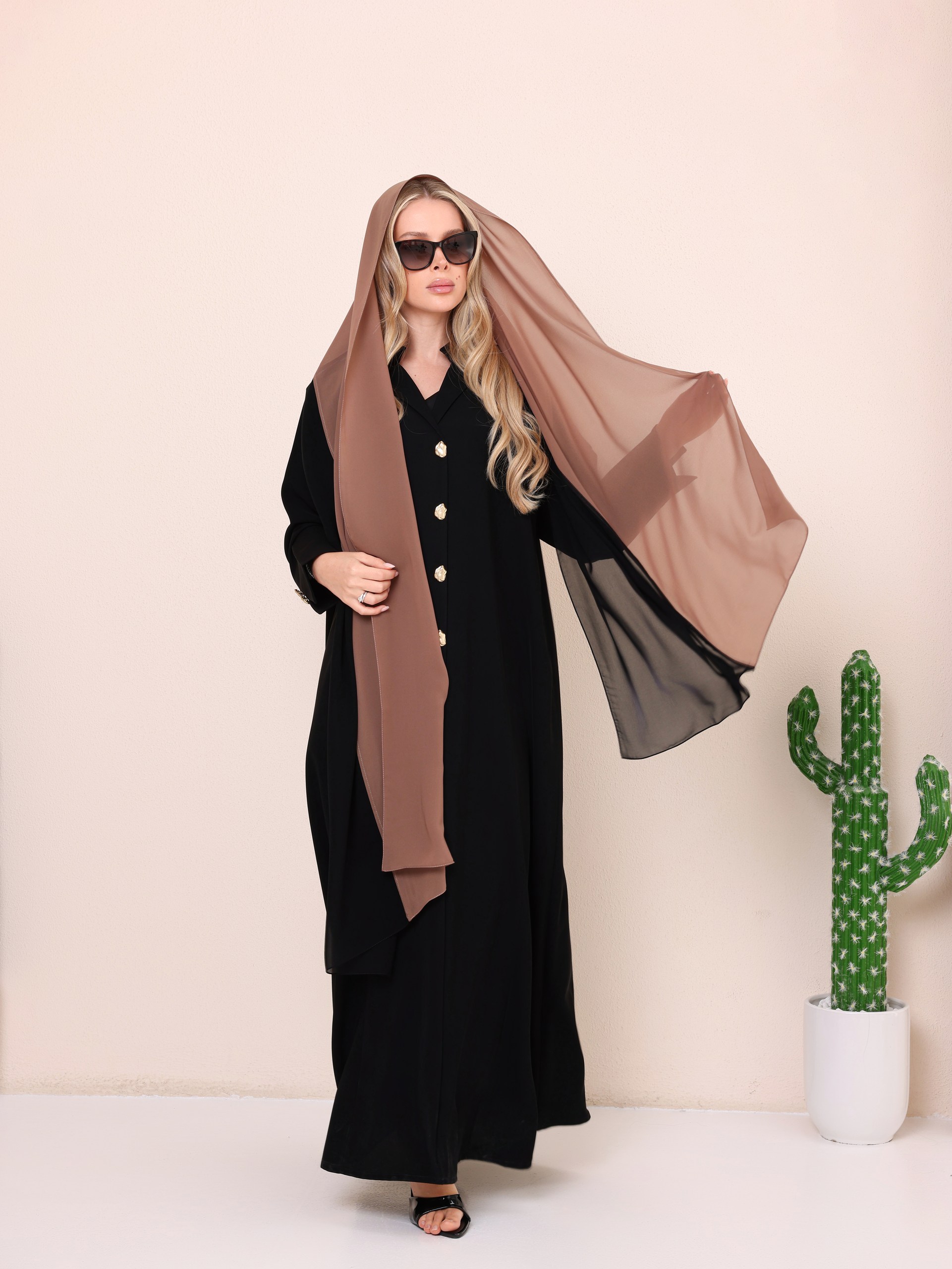For best results, dry clean your abaya. If washing at home, use mild detergent, hand wash gently, and avoid direct sunlight while drying. Iron inside out on low heat.